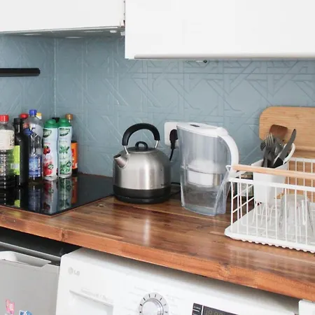 This property is equipped with self-catering facilities, including a kitchen with a fridge and a kitchenware. The apartment is located in the vicinity of Saint-Michel Notre-Dame train station.
